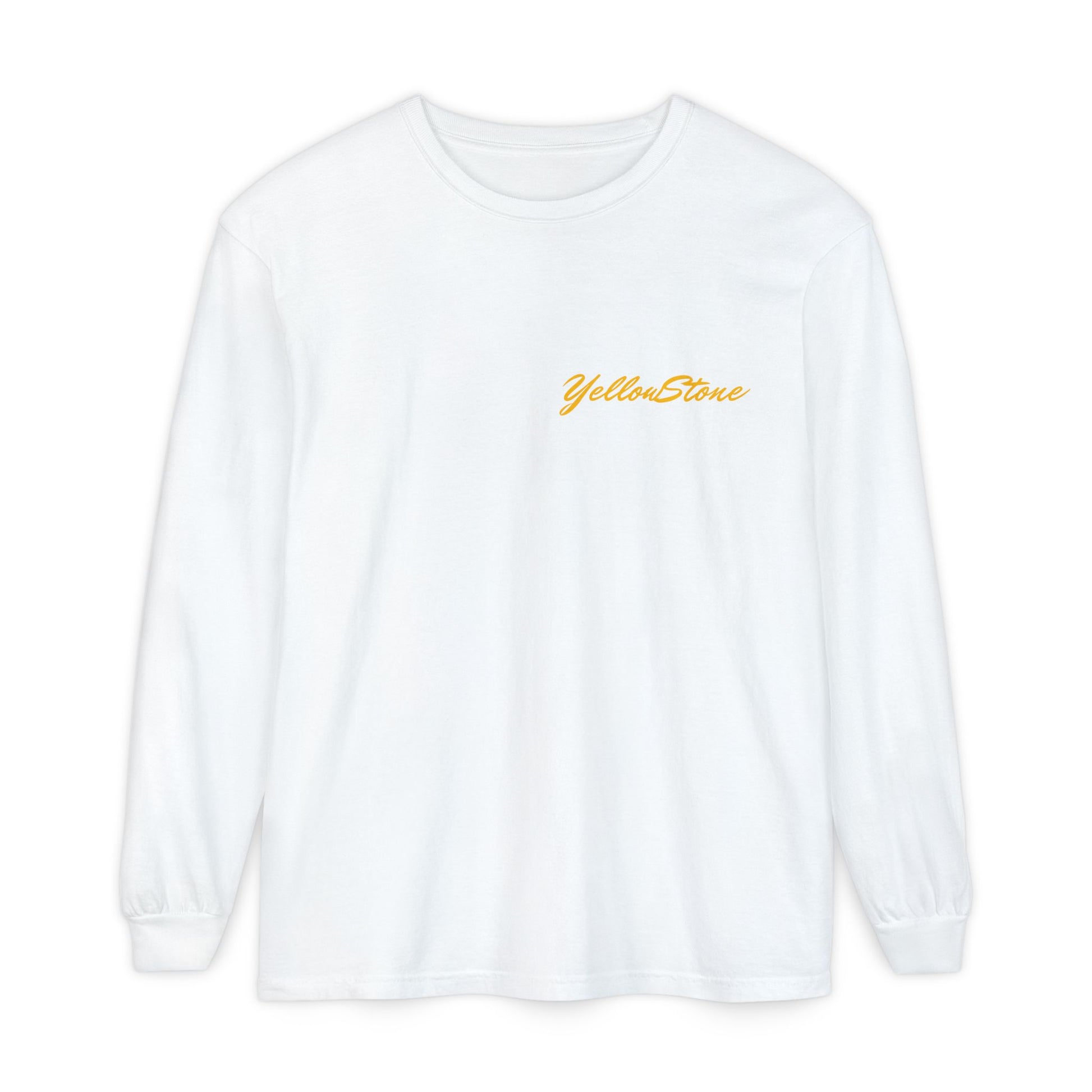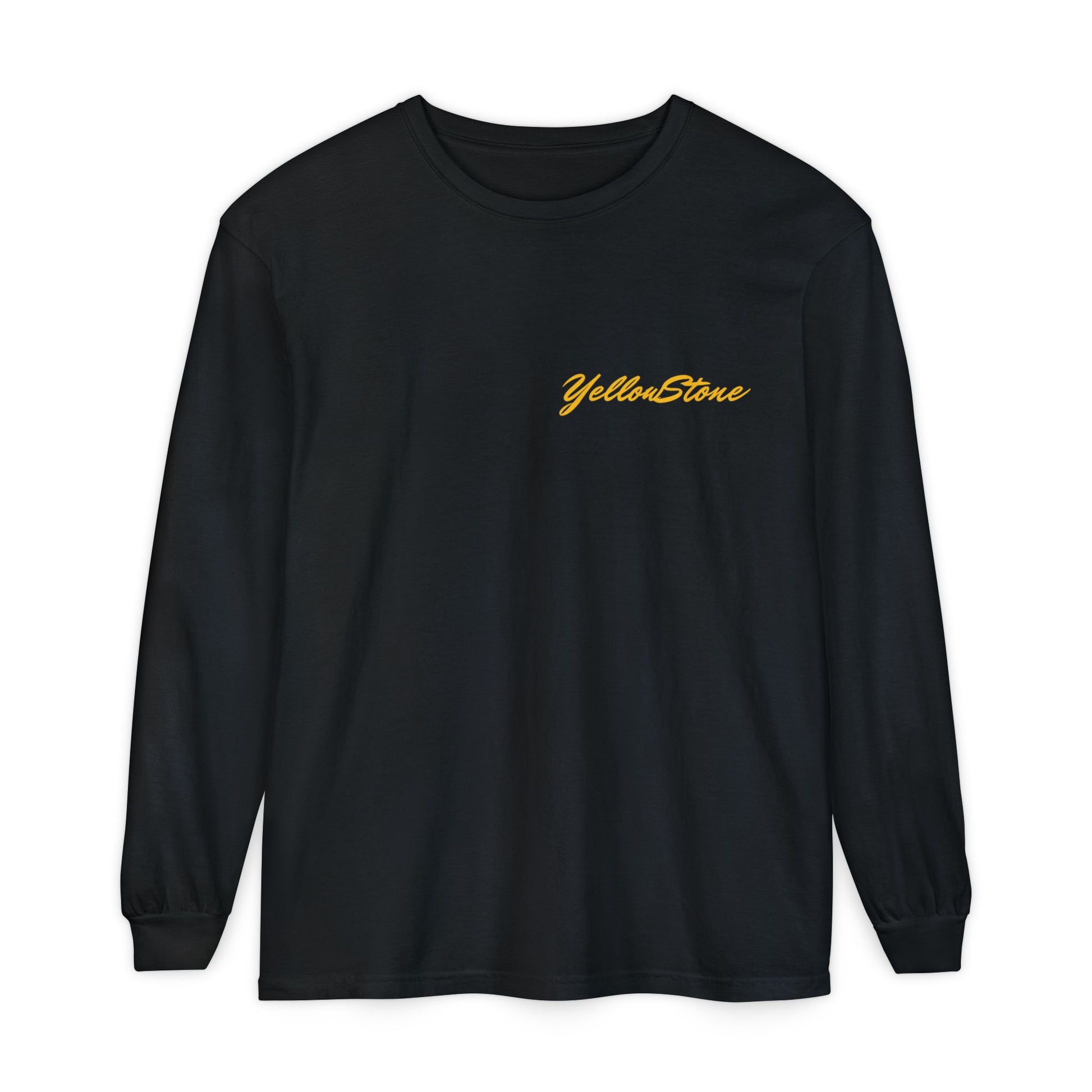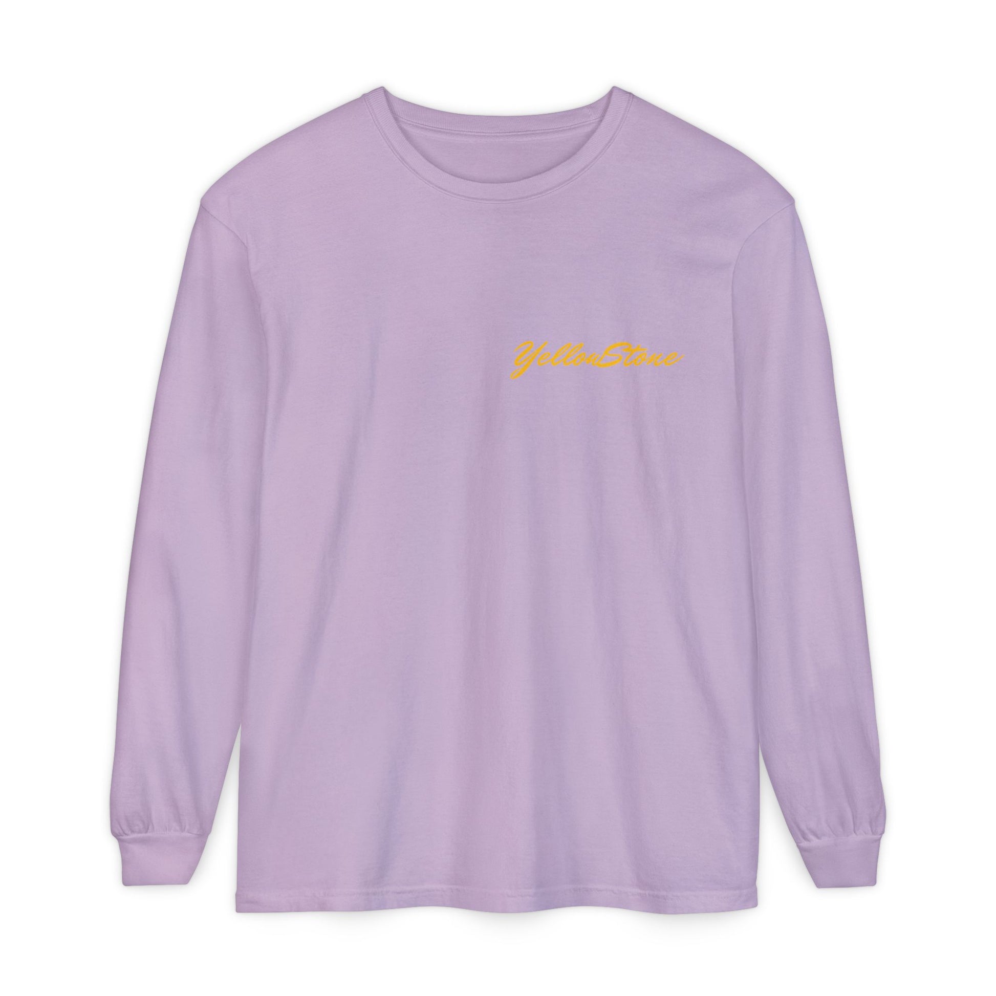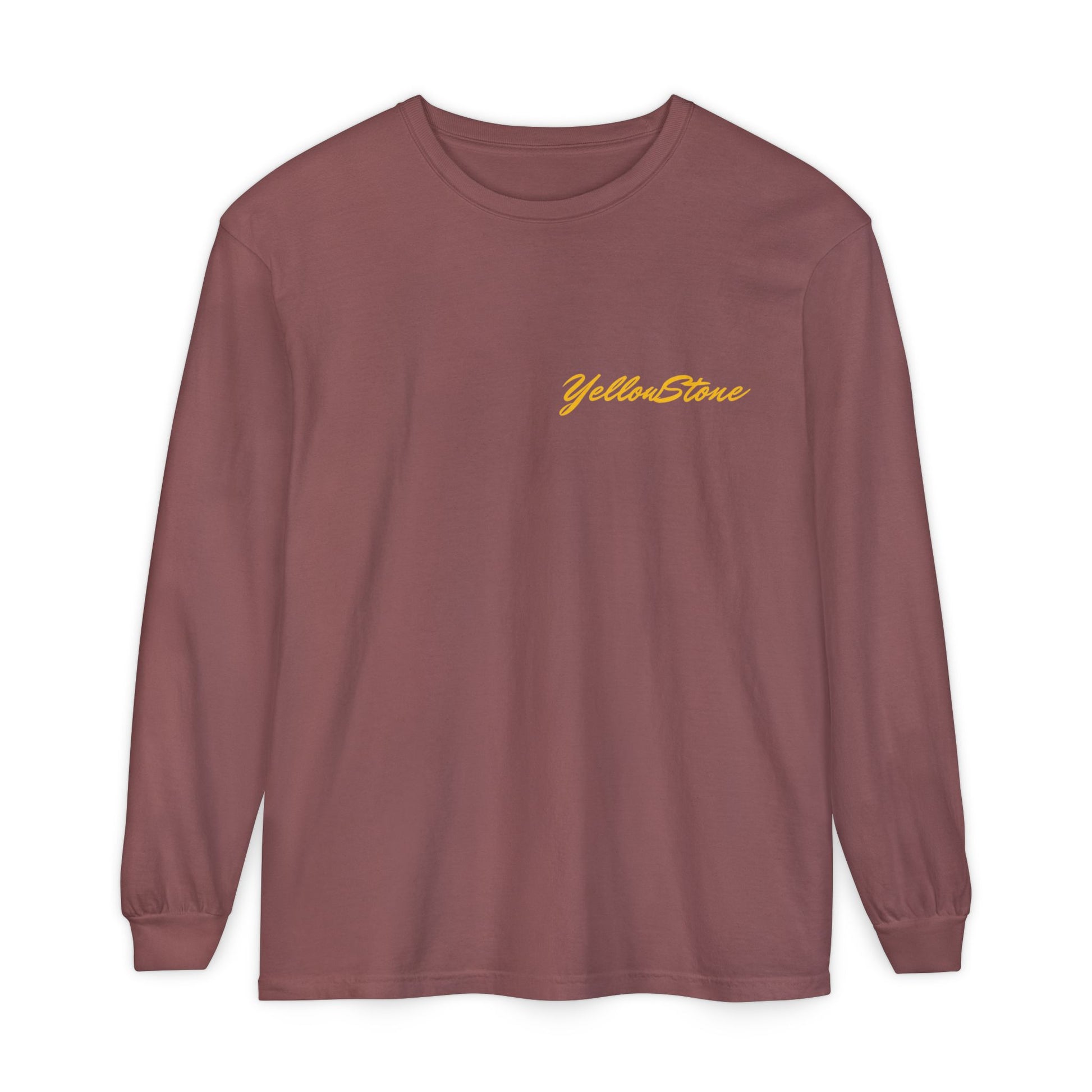 A soft, lived-in long sleeve that feels like it’s already been on your favorite trail. This garment-dyed tee brings cozy texture and warm color to a classic fit, while a vintage-inspired Yellowstone graphic of a bear family and wildflowers anchors the back in nostalgic park style. Lightweight but substantial, the ribbed cuffs and reinforced neck and shoulders keep the shape through hikes, campfire talks, and lazy weekends. Wear it layered under a flannel, over a tank, or solo when you want a quiet, nature-forward statement that ages beautifully with every wash.